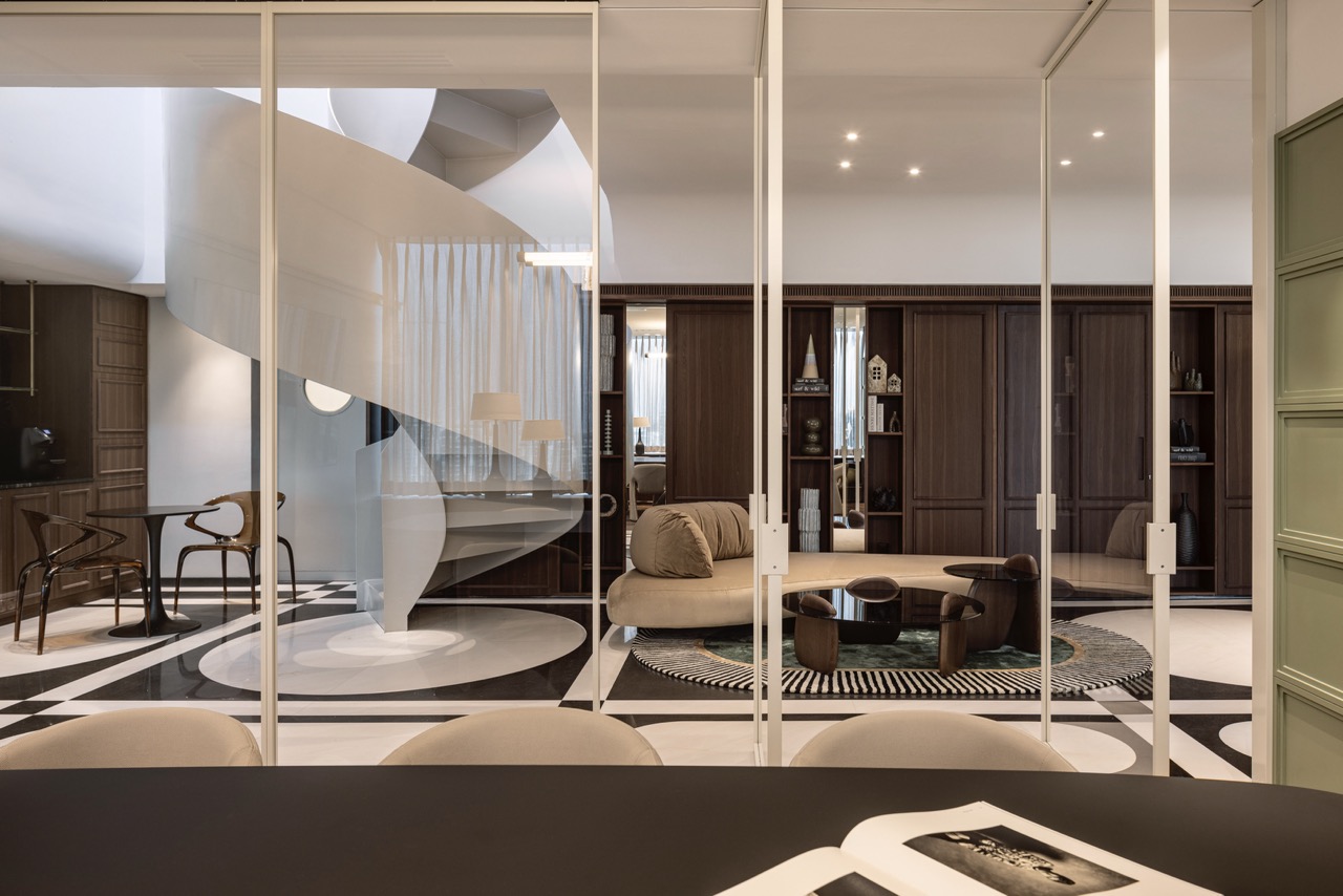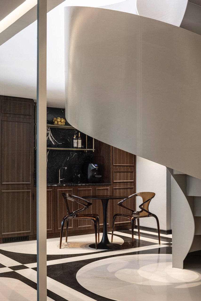 עיצוב ריצוף טבעי המשלב בין 2 חומרים בצבעי שחור ולבן. ביצוע עבודות חיתוך לפי מידות של הריצוף באמצעות טכנולוגיית וואטר ג׳ט.
