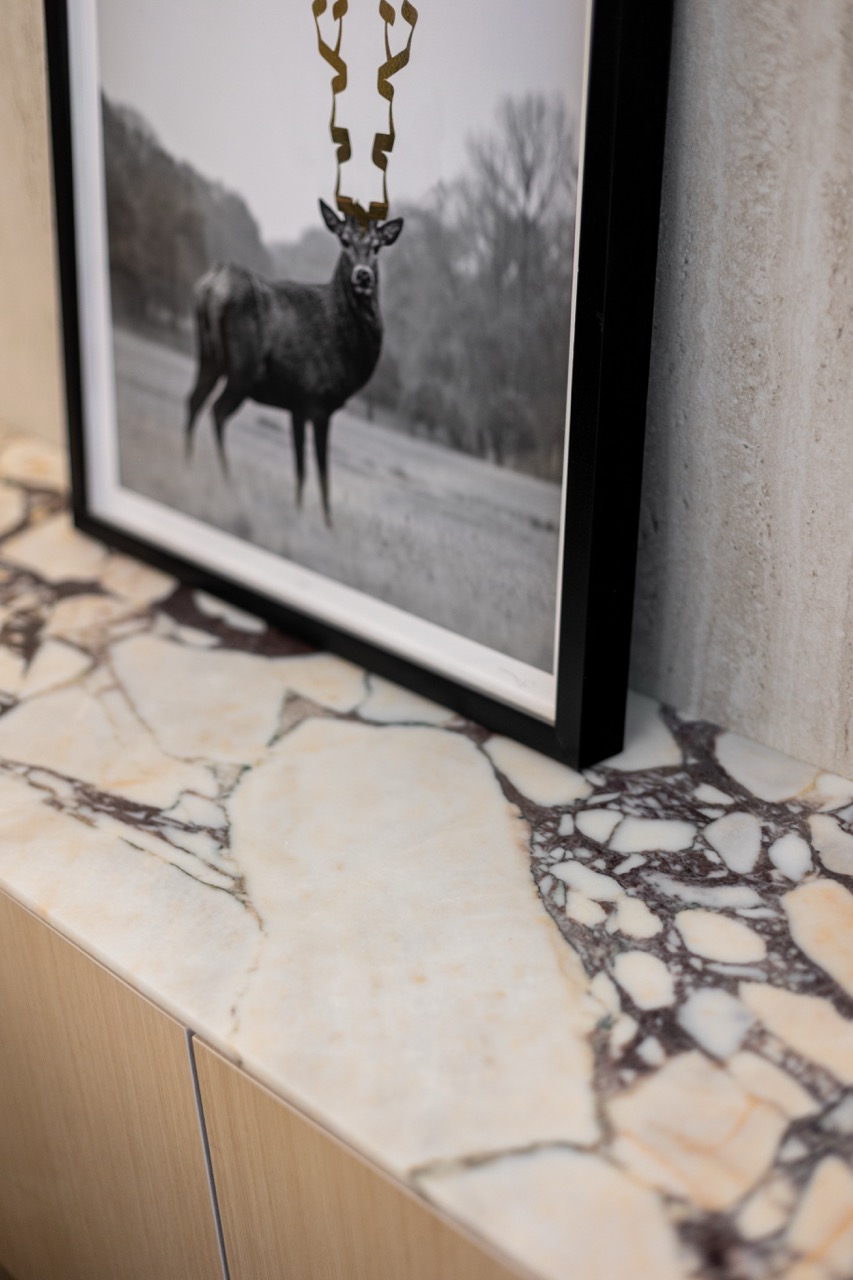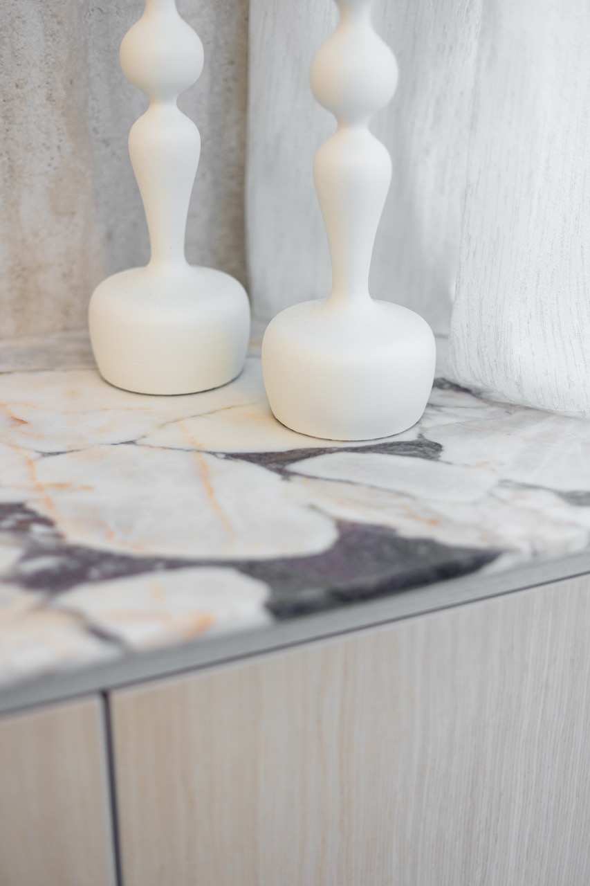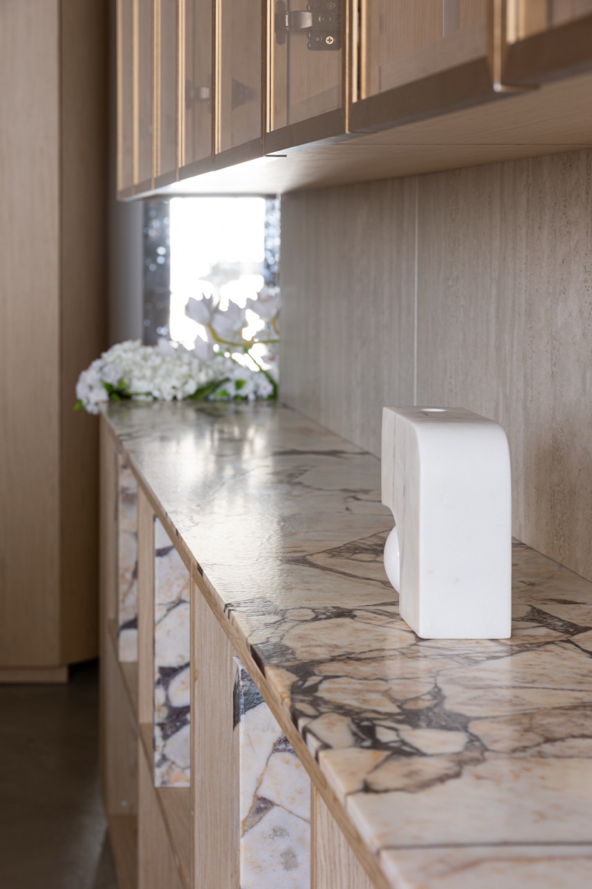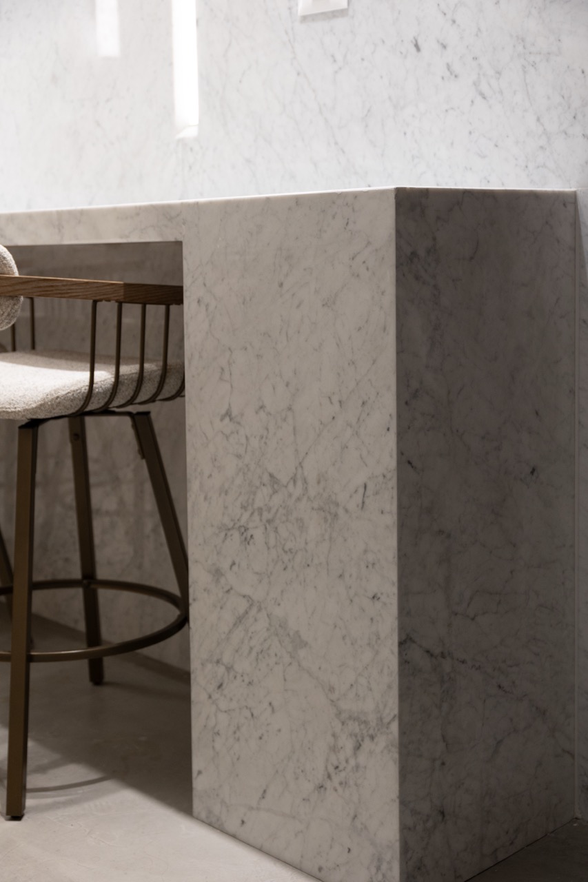 פרוייקט מדהים בו שילבנו חומרים טבעיים בריהוט מאבן טבעית ומטבחון עם משטחי קררה מדהימים.