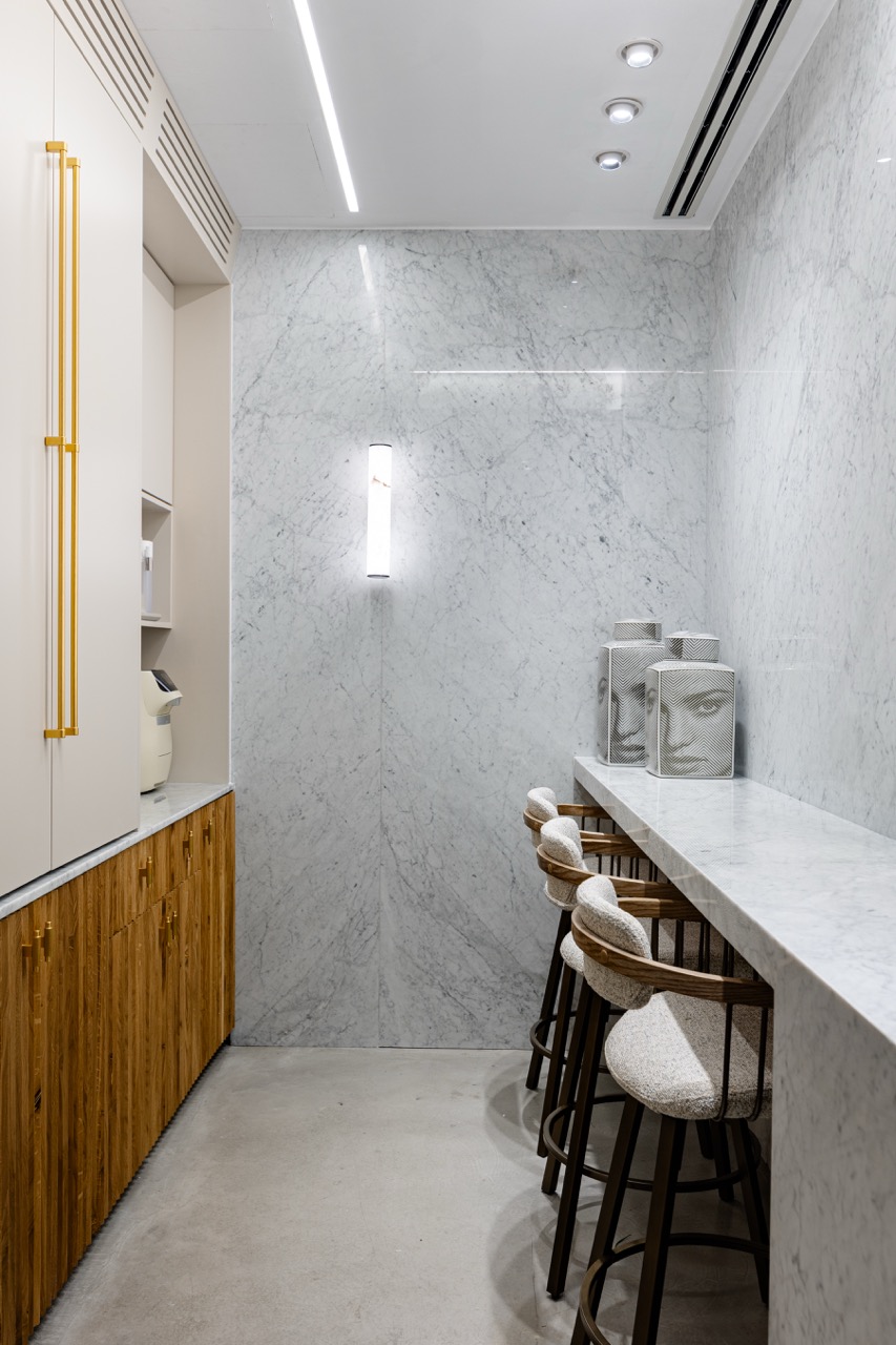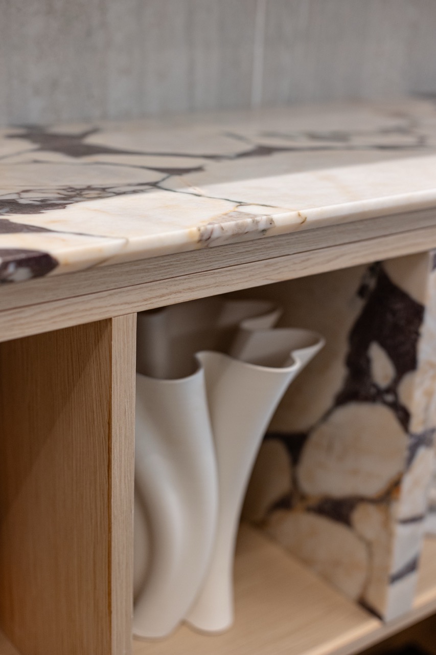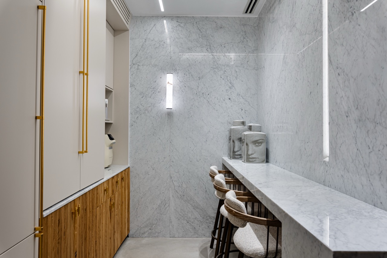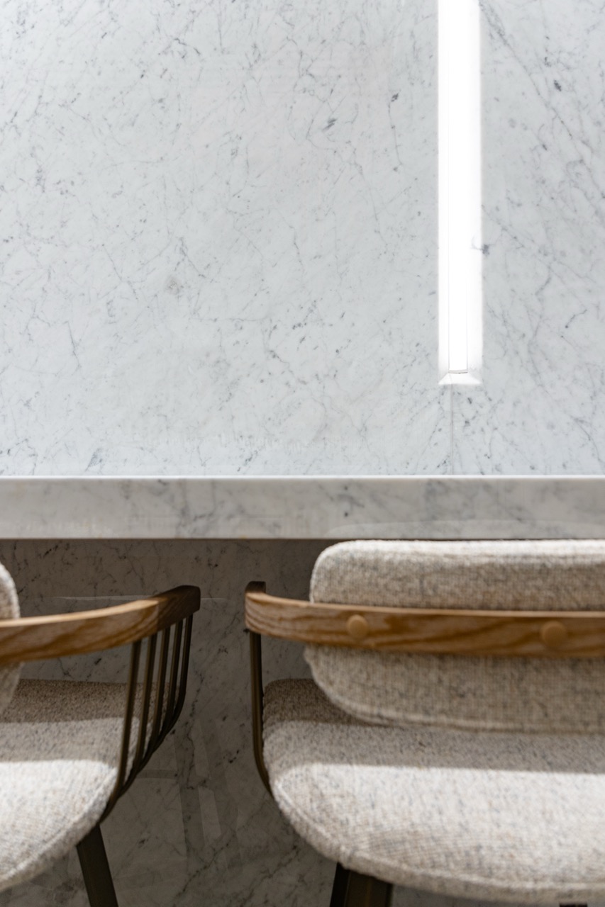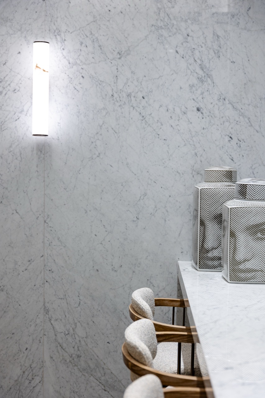פרוייקט מדהים בו שילבנו חומרים טבעיים בריהוט מאבן טבעית ומטבחון עם משטחי קררה מדהימים.